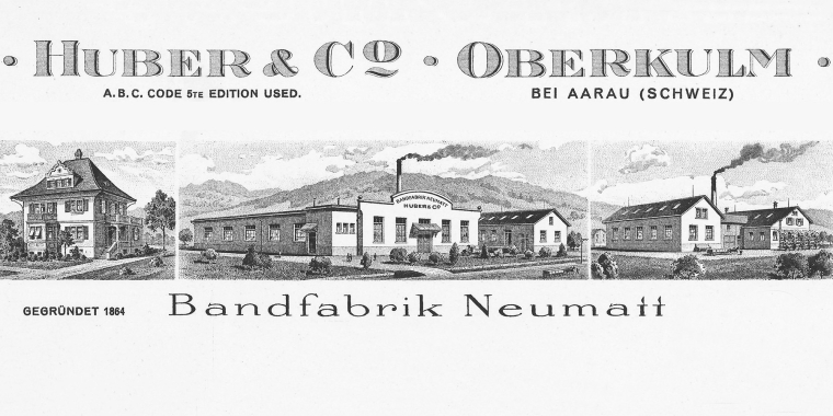1951Umwandlung der Kommanditgesellschaft in die Huber & Co. AG Bandfabrik. Produktion von Reissverschluss-, Vorhang- und Merceriebändern.